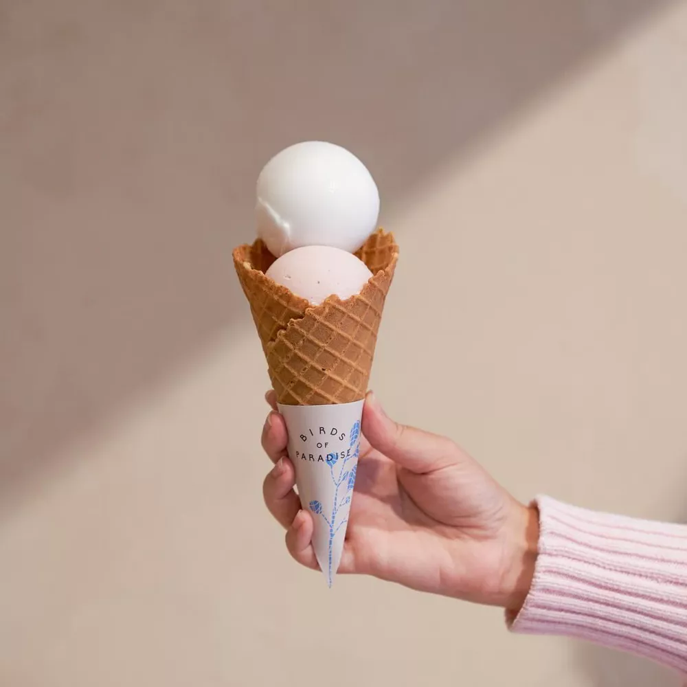 But the star isn’t just the gelato. Their signature thyme cones—freshly baked in-house—add a fragrant, savoury crispness that pairs beautifully with floral or fruit-forward flavours. Because of its light, delicate profile, Birds of Paradise is a great option for those who prefer gelato that isn’t too heavy or sugary.