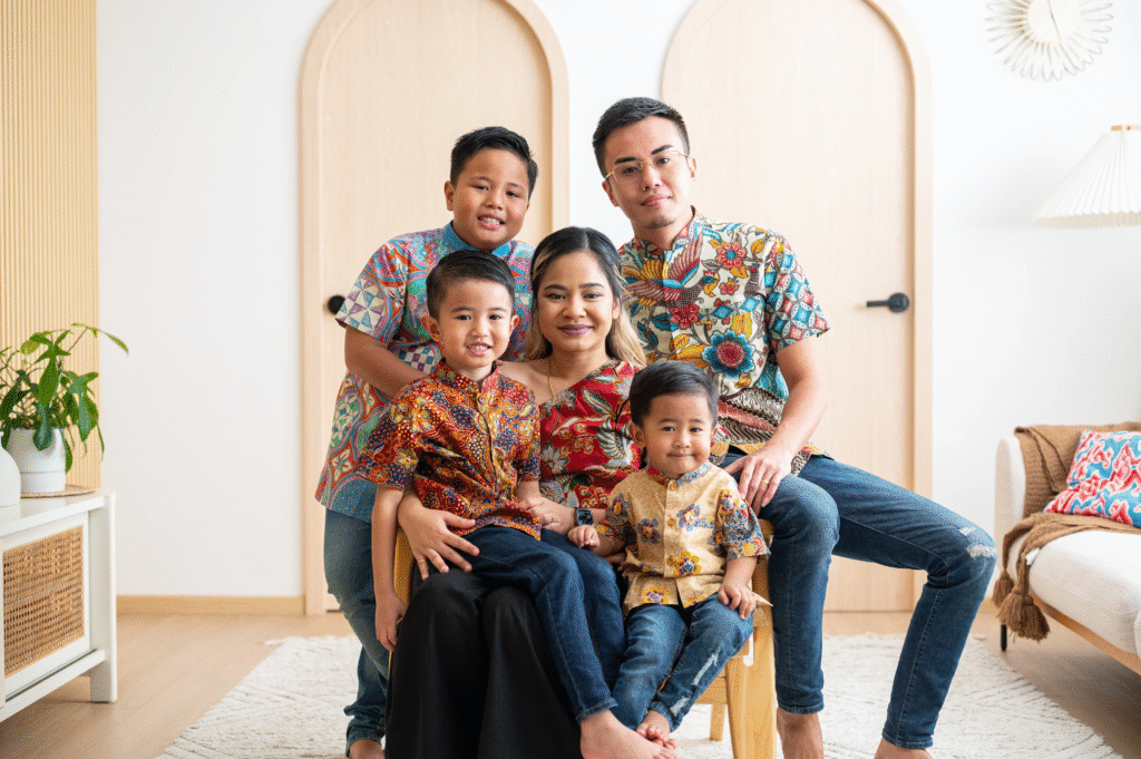Singapore’s tropical climate also plays a role, with many labels designing breathable cotton, linen or soft chiffon outfits suitable for long days of house-hopping. Whether you have a newborn, an active toddler, or teens in tow, today’s family clothing collections are more stylish and comfortable than ever.