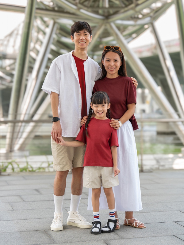 Pair matching colours, or dress everyone in a similar palette for a stylish yet effortless look. Their AIRism and cotton options are ideal for Singapore’s heat.