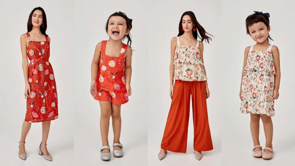 Expect mandarin-collar dresses for girls, button-down shirts for boys, comfortable rompers for babies, and sophisticated matching styles for parents. The fabrics are premium and gentle, backed by the brand’s reputation for quality.